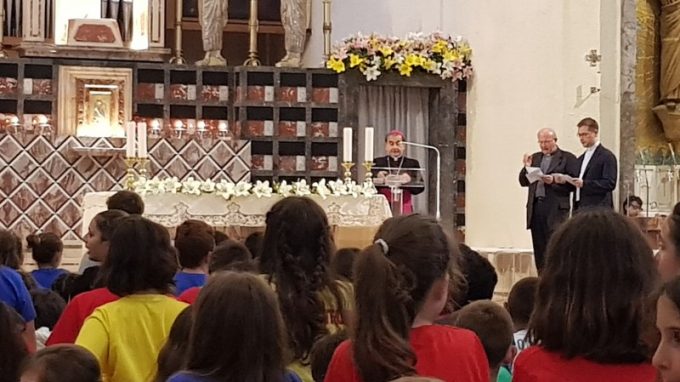 Il vescovo ha parlato in due momenti distinti ai più piccoli delle scuole elementari e poi ai “grandi” delle scuole medie, utilizzando un registro linguistico diverso a seconda degli interlocutori che aveva di fronte, ma mantenendo costante il filo rosso dell’importanza della preghiera.
