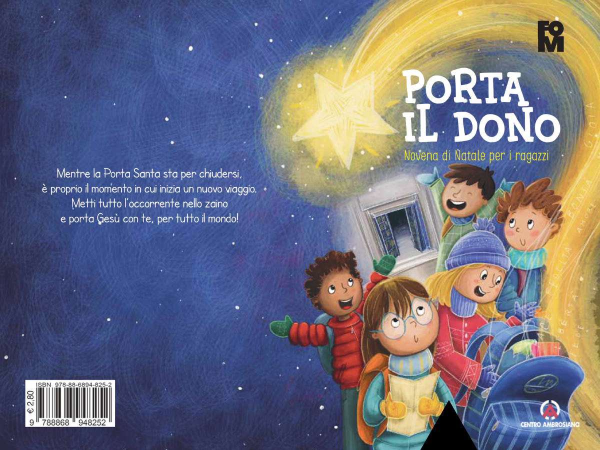 Alla fine di un viaggio c’è sempre un dono da portare. Quale porteremo noi nel nuovo futuro che si apre? La Novena di Natale per i ragazzi 2025 della FOM dal titolo PORTA IL DONO (ed. Centro ambrosiano) offre uno schema di preghiera vivace e profondo per accompagnare bambini e ragazzi negli ultimissimi giorni del Giubileo della Speranza, dal 16 al 24 dicembre. Cinque amici – Giacomo, Pietro, Angelo, Francesca e Paola – tornano da Roma a Milano, dopo aver varcato la Porta Santa.
