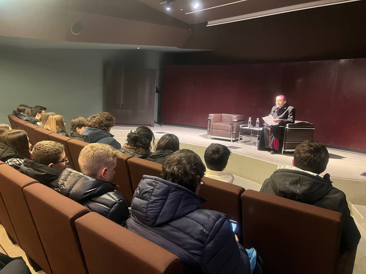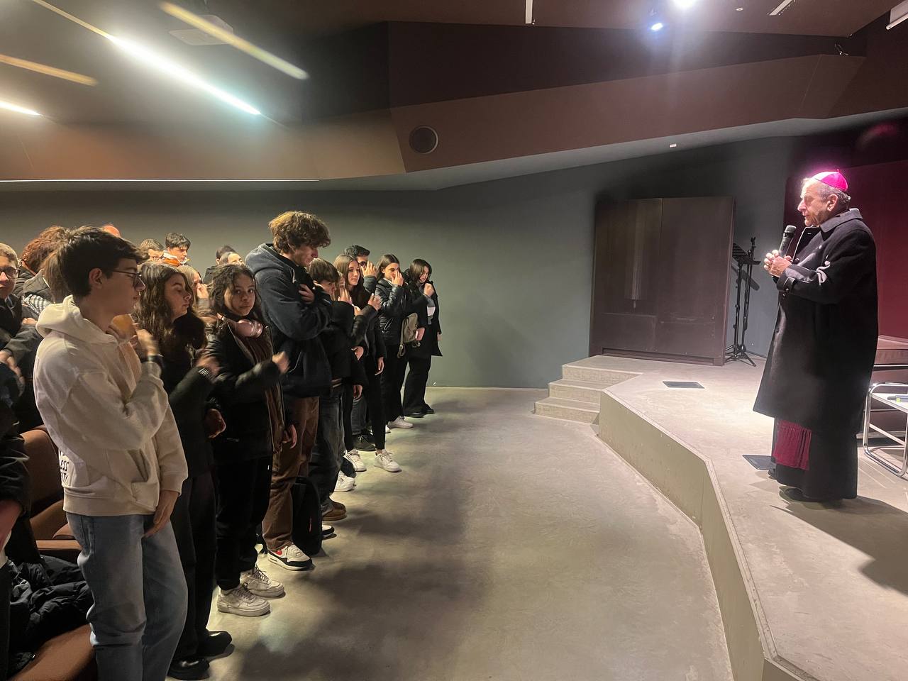 L’Arcivescovo ha camminato con gli adolescenti in uno dei tre turni di visita che erano previsti per l’occasione. Con lui alcuni hanno pregato un Padre nostro per tutte le vittime della Shoah. I gruppi si sono ritrovati poi tutti insieme nell’auditorium del Memoriale per mettersi in ascolto delle parole dell’Arcivescovo.