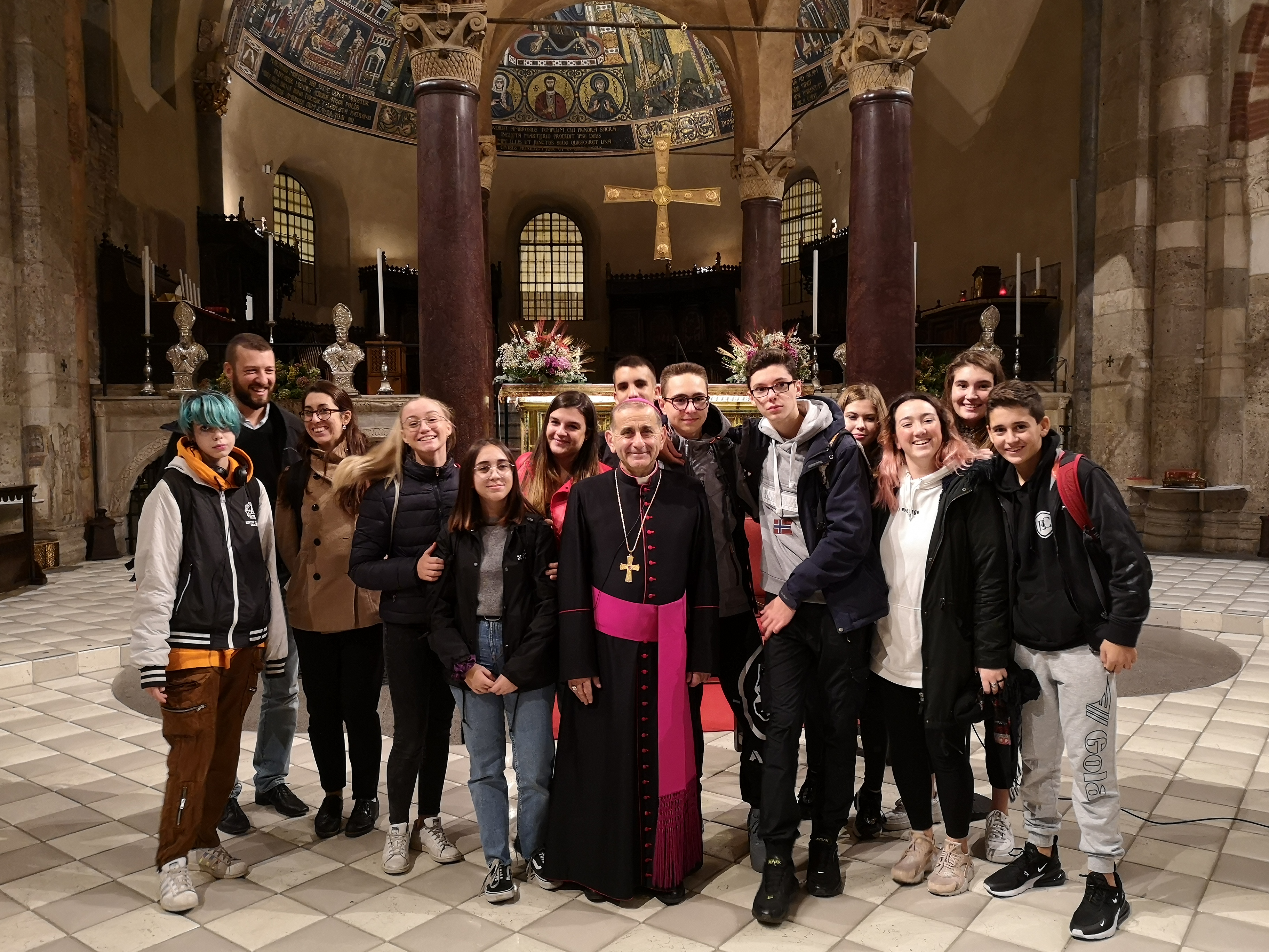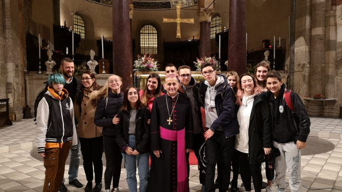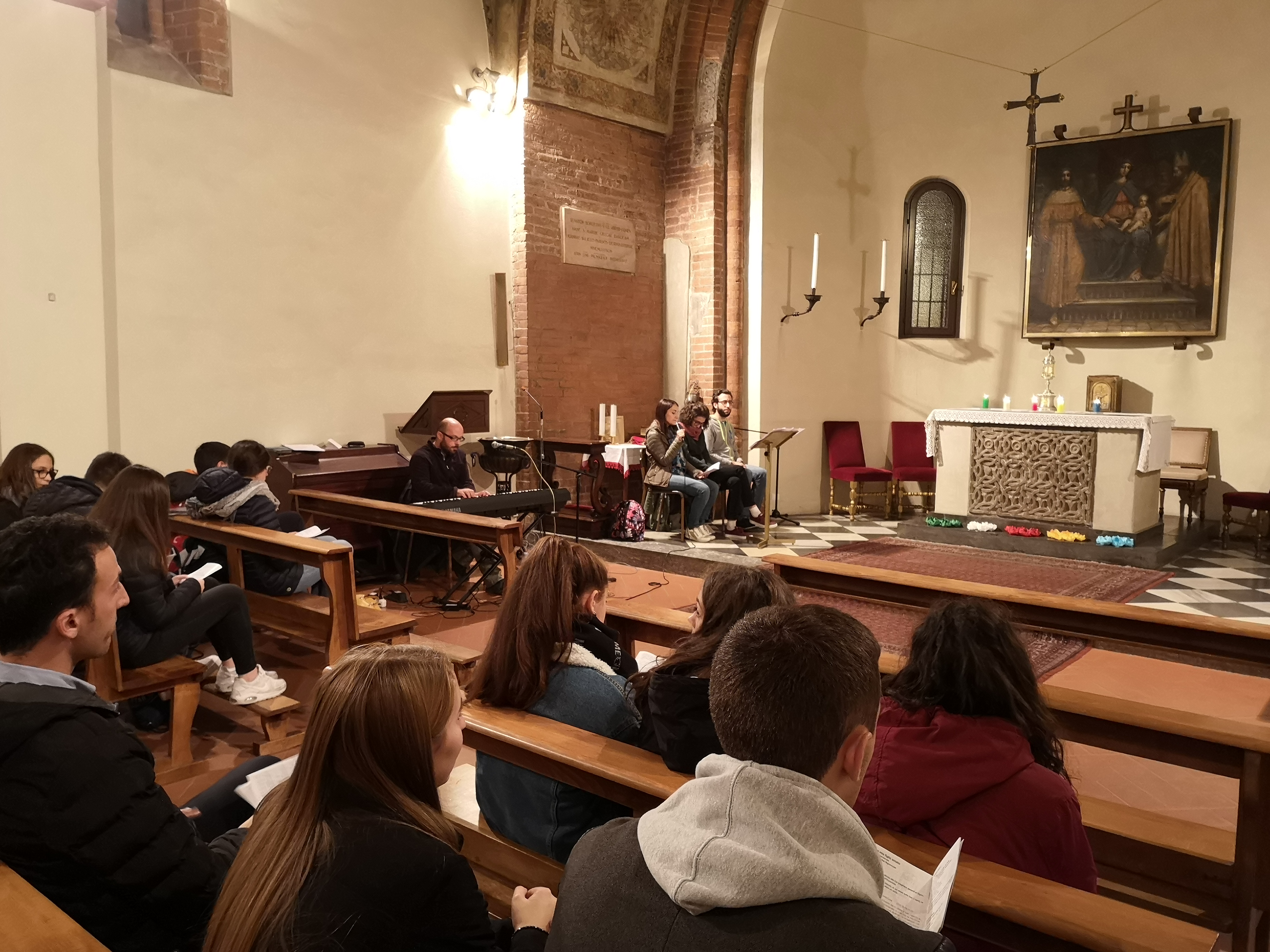 L’ascolto del Vangelo di Giovanni (20,18-23) viene commentato, per i primi gruppi, proprio dall’Arcivescovo Mario Delpini: «I discepoli si trovavano in un ambiente con le porte chiuse, per paura dei giudei. Erano un gruppo di uomini spaventati. Qualche volta forse capita anche a voi di avere paura… di sentirvi in difetto e complessati, di non pensarvi simpatici o di avere difficoltà a scuola. Ma, a dire la verità, Dio ha stima di voi. Non dovete dire che non valete niente, anche se a volte siete impauriti o se siamo inaffidabili. Gesù conosce ciascuno e rivela che ha stima di voi: vi considera adatti per la missione che vi vuole affidare! Ecco dunque il secondo pensiero di questa sera: il Signore ha stima di voi, quindi voi siete autorizzati ad avere stima di voi stessi. Non dovete guardarvi allo specchio e dire “che disastro che sono”… non sono bravo come quello là, vedo solo i miei pasticci… Siamo portati a sottovalutarci, a volte, magari dopo una mattina andata male a scuola, una partita persa e la ramanzina del papà: ci possono essere nella vita momenti di scoraggiamento, cose che mi fanno arrabbiare, ma se uno considera che Gesù ha stima di me capisco che io posso aver stima di me stesso, sono amico di Gesù. Per questa stima affida loro una missione: siete battezzati e inviati, chiamati per nome e chiamati per essere mandati. Gesù caratterizza la missione in una certa maniera: a chi perdonerete sarà perdonato. La missione sostanziale è quella di dire “siete perdonati”, annunciare che c’è perdono quando si sbaglia, esiste la possibilità di una vita nuova, ricominciando, riconciliati. Ecco i tre pensieri che vi voglio consegnare: non dovete sottovalutarvi, perché Dio ha stima di voi; se Dio ha stima di voi tu sei autorizzato ad aver stima di te stesso; Gesù vi manda, non in qualche impresa spericolata, a conquistare il mondo, ma il compito che vi affida è di annunciare il perdono e la pace, una missione di riconciliazione e di misericordia, creando comunità in cui ci si voglia bene».