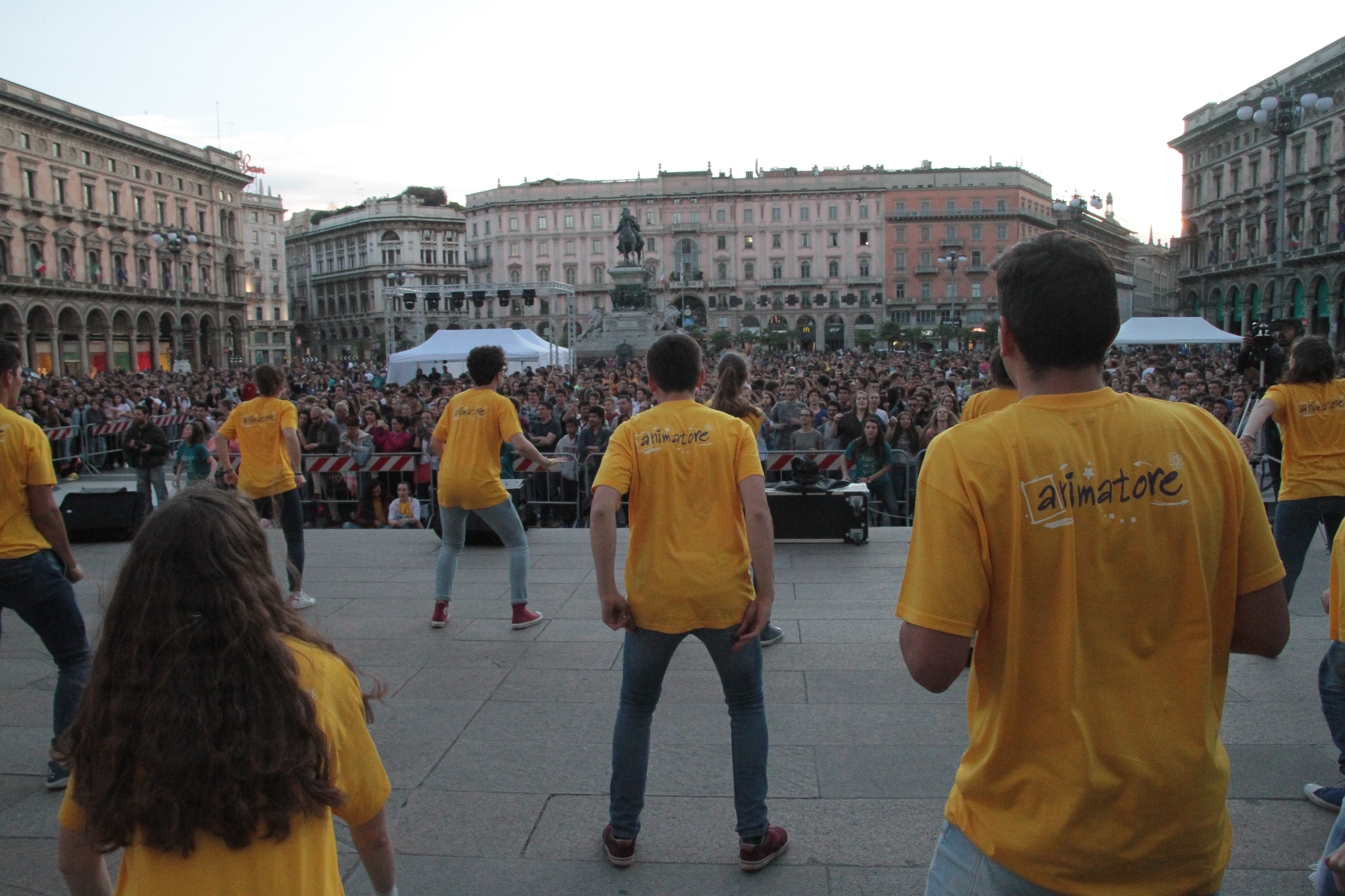 Sfidando l'incertezza del tempo gli animatori degli oratori ambrosiani hanno riempito Piazza del Duomo ed è stata subito una festa dell'Estate per dire a tutti DettoFatto.