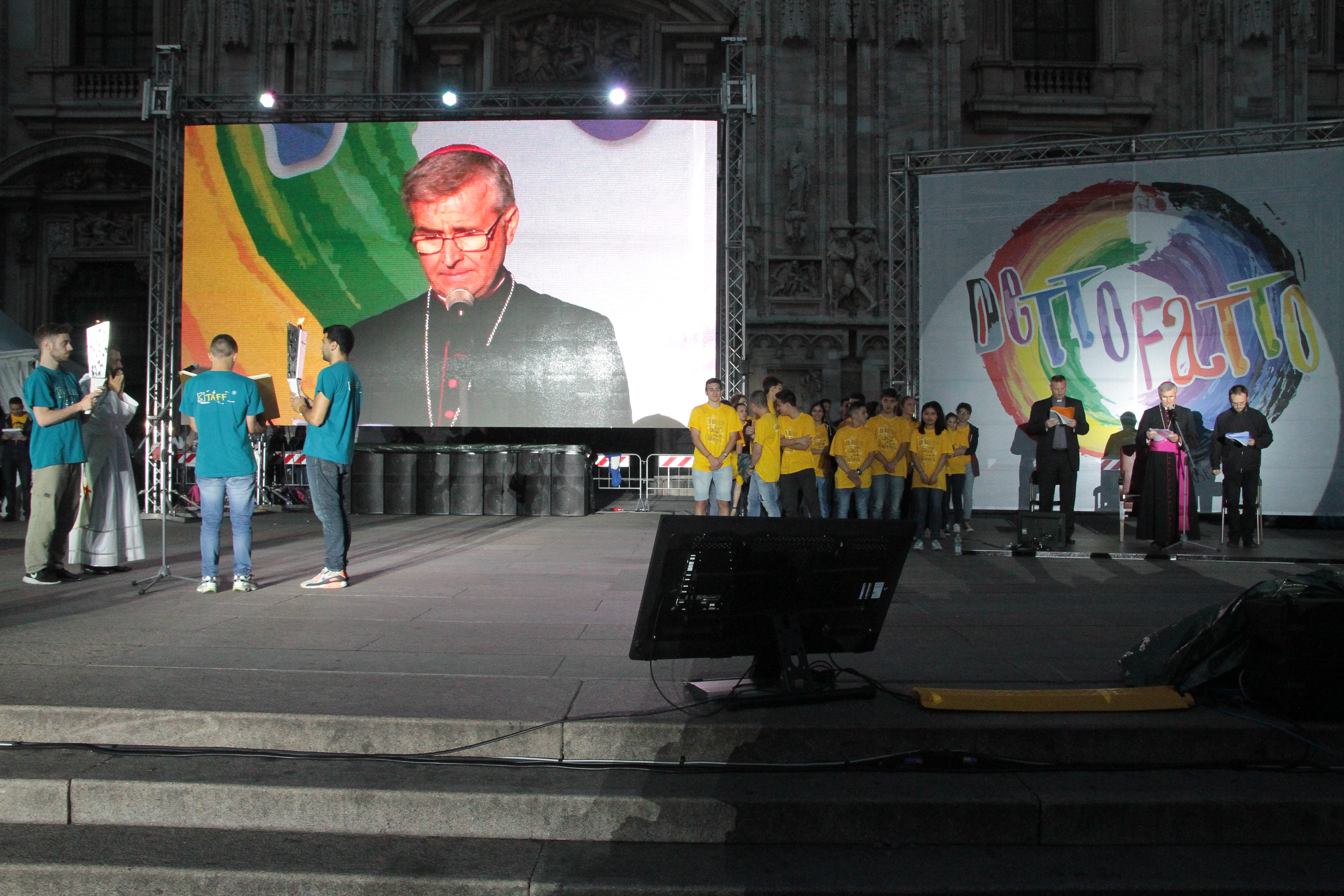 L’incontro in Piazza Duomo è stata l’opportunità per ricevere il Mandato educativo da parte della Chiesa diocesana. A rappresentare l’Arcivescovo, Sua Ecc.za Mons. Pierantonio Tremolada, Vicario episcopale per l’Evangelizzazione, che è stato accolto con entusiasmo nel corso della serata, iniziata con i balli della proposta DettoFatto e con un medley di tutti gli inni delle passate edizioni dell’Oratorio estivo.