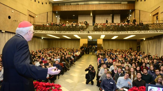 «Nessuno di noi è solo, ricordiamoci la presenza silenziosa ma ostinata e tenera di Dio»: l’ha detto il cardinale Scola ai giovani, nel primo “Dialogo della fede” all’Università degli Studi di Milano, ampliato in modo interattivo dai collegamenti tv, radio, web e Twitter.