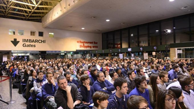 L’incertezza che attraversa la vita giovanile e la certezza che è il Signore, «roccia a cui aggrapparsi», «relazione costitutiva» sulla quale costruire una vita aperta agli altri a 360°, al «noi e al futuro». E, poi, la dimensione del dono, della gratuità, e quella domanda radicale sul dolore fisico e morale che chiede una risposta non facile: fidarsi e affidarsi al Dio vicino, con una fede che vince e convince. Il cardinale Scola arriva nella grande “Area gruppi” dell’aeroporto di Malpensa per il secondo Dialogo della fede con i giovani, che si affollano in oltre 1100 per un incontro che diviene scambio di idee, di interrogativi ed esperienze: insomma quel «giocarsi in prima persona» che «è cifra  lo dice più volte l’Arcivescovo – della vera testimonianza».