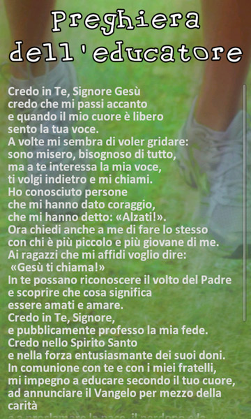 *Preghiera dell’educatore, immancabile per chi vuole mettersi in sintonia con Colui che è già in alto!