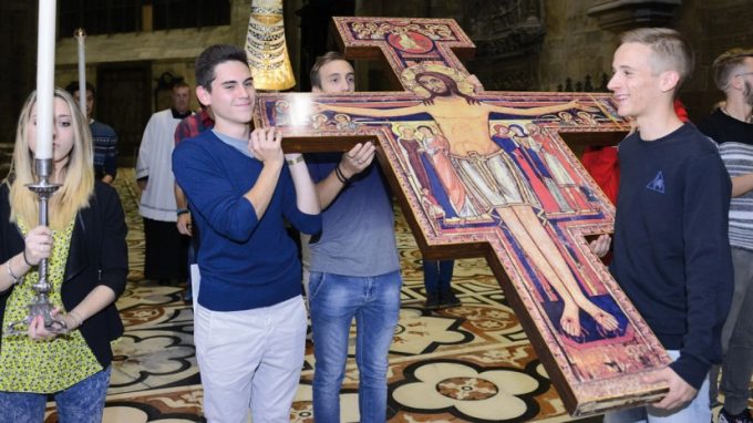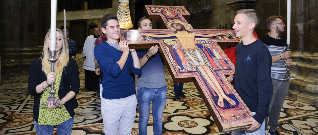 Inizia domenica 25 ottobre e prosegue fino a venerdì 30 il pellegrinaggio della statua della Madonna di Loreto e del Crocifisso di San Damiano nella Diocesi di Milano. «È una iniziativa – spiega don Maurizio Tremolada, responsabile del Servizio per i Giovani – che è nata dal Servizio nazionale di pastorale giovanile e riguarda i due doni che tradizionalmente la Chiesa italiana, attraverso i giovani che partecipano alla Giornata mondiale della gioventù, offre alla Diocesi che ospita la Gmg. La novità di quest’anno è che il Servizio nazionale di pastorale giovanile ha pensato di far benedire questi due segni dal Papa nella scorsa Domenica delle Palme e da quel giorno stanno girando in tutte le Diocesi italiane, per invitare i fedeli, quindi non solo i giovani, delle comunità cristiane a pregare per la preparazione della Giornata mondiale della gioventù di Cracovia. Il pellegrinaggio, che questa settimana si svolge nella Diocesi di Milano, continuerà fino alla Domenica delle Palme del prossimo anno, Anno giubilare.