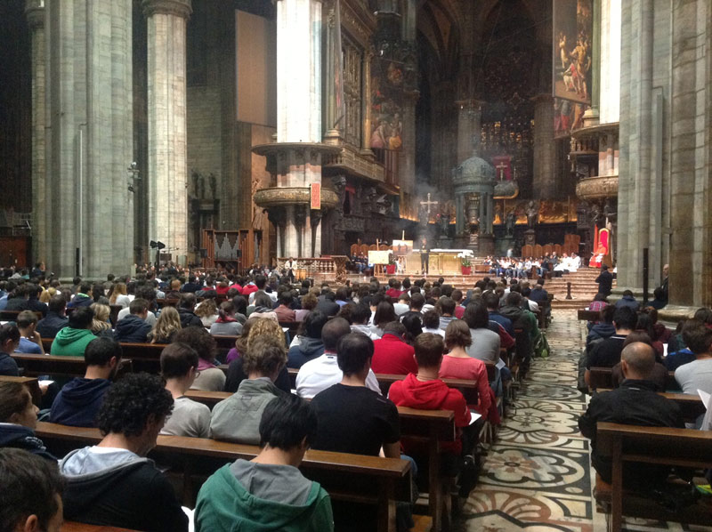 Il lavoro, che per tanti è un problema. “Siete provati su questo punto – riconosce Scola -, è una gravissima responsabilità che portiamo noi delle generazioni che vi precedono: avervi tolto questo elemento della quotidianità”. Il suggerimento dell’arcivescovo è chiedere al Signore di “aiutarci a capire che nel lavoro realizziamo l’offerta di noi stessi. Lì si dà la vita, è la via in cui si comunica Gesù”.