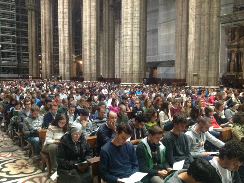Una veglia che “è come una cattedrale”. Così il cardinale Angelo Scola ha definito la Redditio symboli, che anche quest’anno ha chiamato i 18-19enni della diocesi a riempire le navate del duomo di Milano.