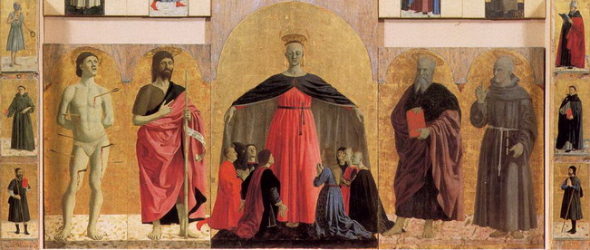 Il complesso apparato venne commissionato all’illustre concittadino dalla Confraternita della Misericordia, nel 1445. Ma, oberato di impegni e spesso in viaggio, Piero riuscì a consegnare l’opera soltanto quindici anni più tardi.