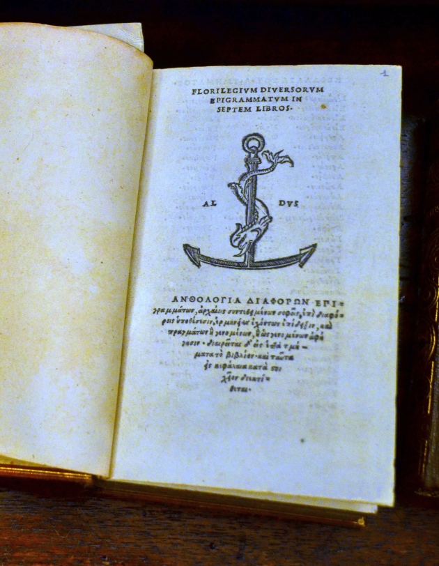 Libri che Aldo Manuzio marcherà ben presto con il suo inconfondibile emblema: un delfino che s’avvolge ad un’ancora. A esprimere due concetti opposti – la solidità dell’ancora, la velocità del delfino – che devono necessariamente integrarsi per un buon risultato: Come a dire: rifletti con calma, ma agisci rapidamente. Il motto, appunto, che ha segnato una straordinaria avventura, umana e culturale.
