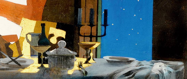 Come il pane, che Arcabas ritrae in molte sue opere, che è nutrimento quotidiano e cibo di vita eterna. Come il pesce, emblema stesso di Cristo nel suo nome greco. Ma anche in una semplice pera, frutto del nuovo Eden in cui saremo condotti dal nuovo Adamo. E perfino in un prosaico armadio, custode di domestiche utilità, ricovero di materiali necessità, e che viene invece come trasfigurato dal segno della salvezza, dalla croce gloriosa che fa nuove tutte le cose.