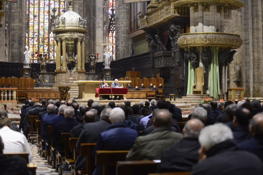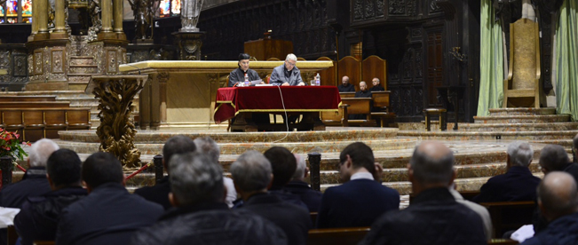 «Diverse ragioni rendono particolarmente significativa la presenza di Sua Beatitudine tra noi. Anzitutto l’eroica testimonianza cristiana dei nostri fratelli nelle martoriate terre del Medio Oriente». Sono queste le parole con cui il cardinale Scola accoglie in Duomo il cardinale Béchara Boutros Raï, patriarca dei Maroniti in Libano, che nel contesto dell’iniziativa «Evangelizzare la metropoli» incontra il clero ambrosiano (in serata sarà la volta dei laici).