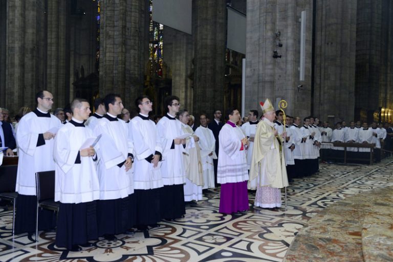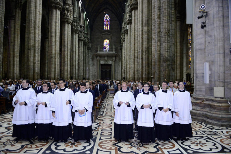 Comunità educante per eccellenza è il Seminario e la comunità di formazione per il diaconato permanente. Realtà in festa, oggi, per i candidati al diaconato e al presbiterato presenti alla celebrazione. La festività di Maria Nascente è infatti, di consuetudine, anche l’occasione per celebrare il rito di ammissione agli Ordini sacri. Durante il saluto rivolto ai candidati Scola ha detto: «Hanno compiuto un cammino educativo che, con il gesto pubblico che fra poco compiremo, entra nella sua fase decisiva. Non è possibile accogliere un ministero nella Chiesa – nessuno si invia da sé, tutti siamo presi a servizio – senza la disponibilità cordiale e permanente a lasciarsi educare».