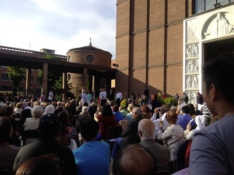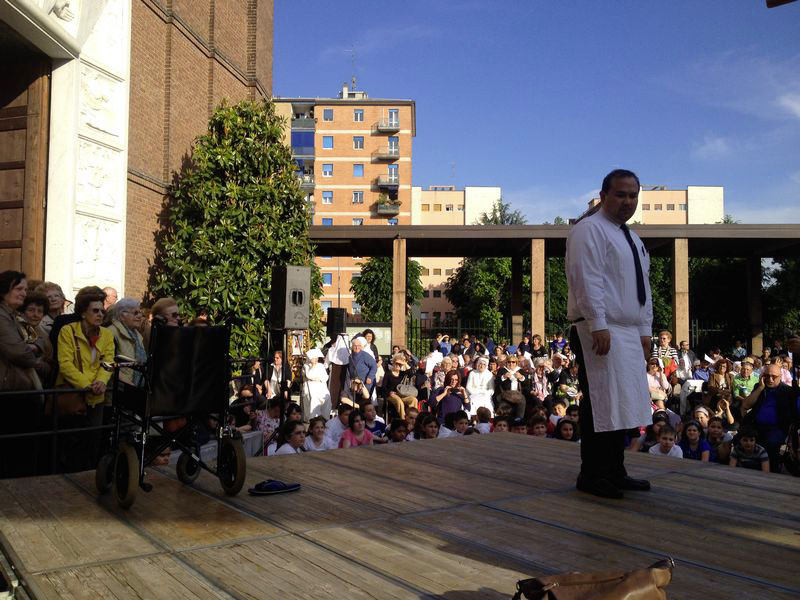 Con l’Arcivescovo sull’ampio piazzale della parrocchia, un pubblico attento ha seguito un breve sociodramma della comunità salvadoregna e filippina, che in poco più di 20 minuti ha rappresentato quanto avviene ogni giorno, per le strade e nelle nostre case: eventi di cui scopriamo il senso alla luce della fede (perdere il lavoro, ritrovarlo come badante o colf, riperderlo, ma riscoprire anche l’affetto e la vicinanza delle persone). È seguito un appassionante monologo dell’argentino Manuel Ferreira (della compagnia “Alma Rosé”) che ha cantato l’amore e i litigi da innamorato dopo 18 anni con la sua Milano.