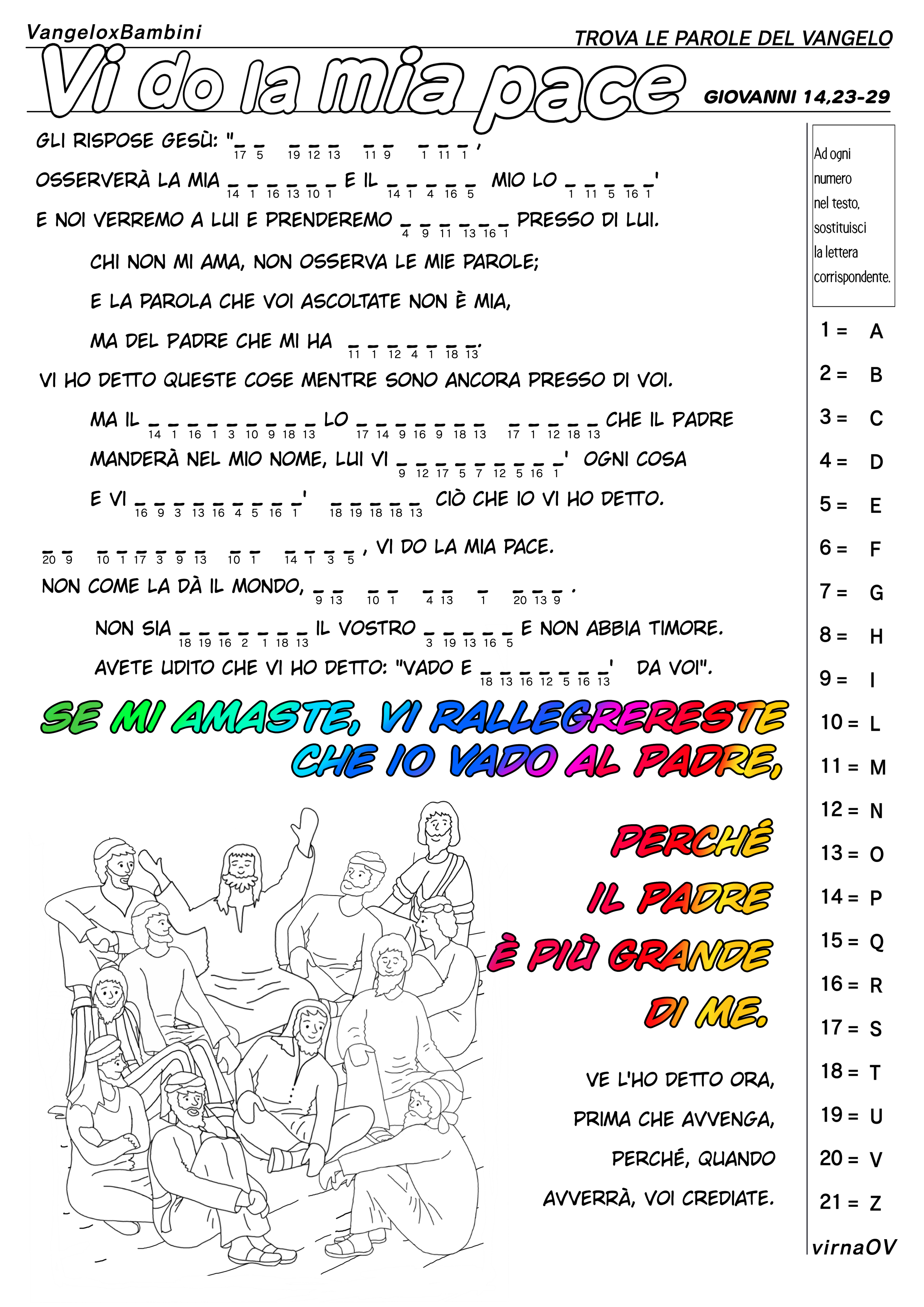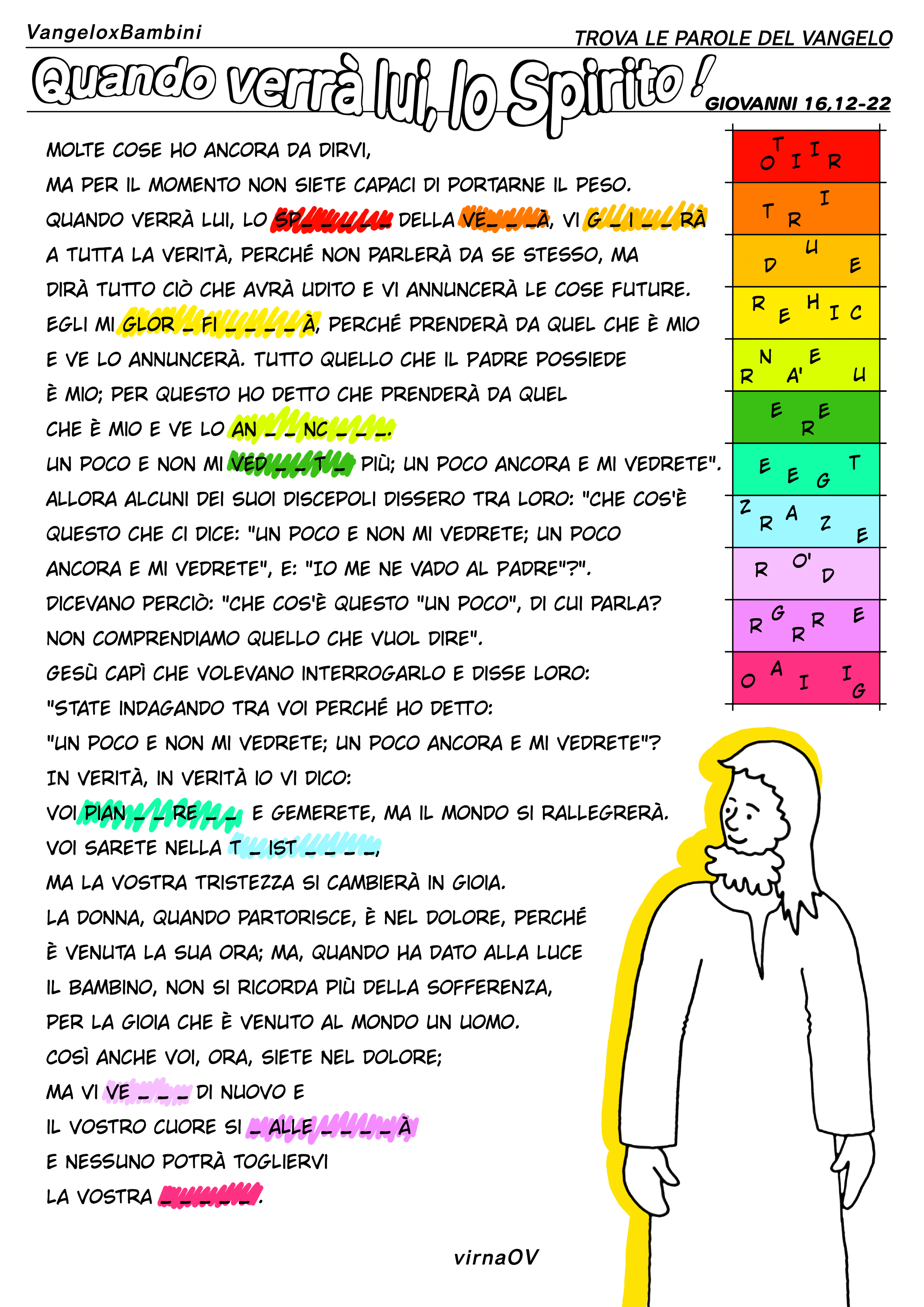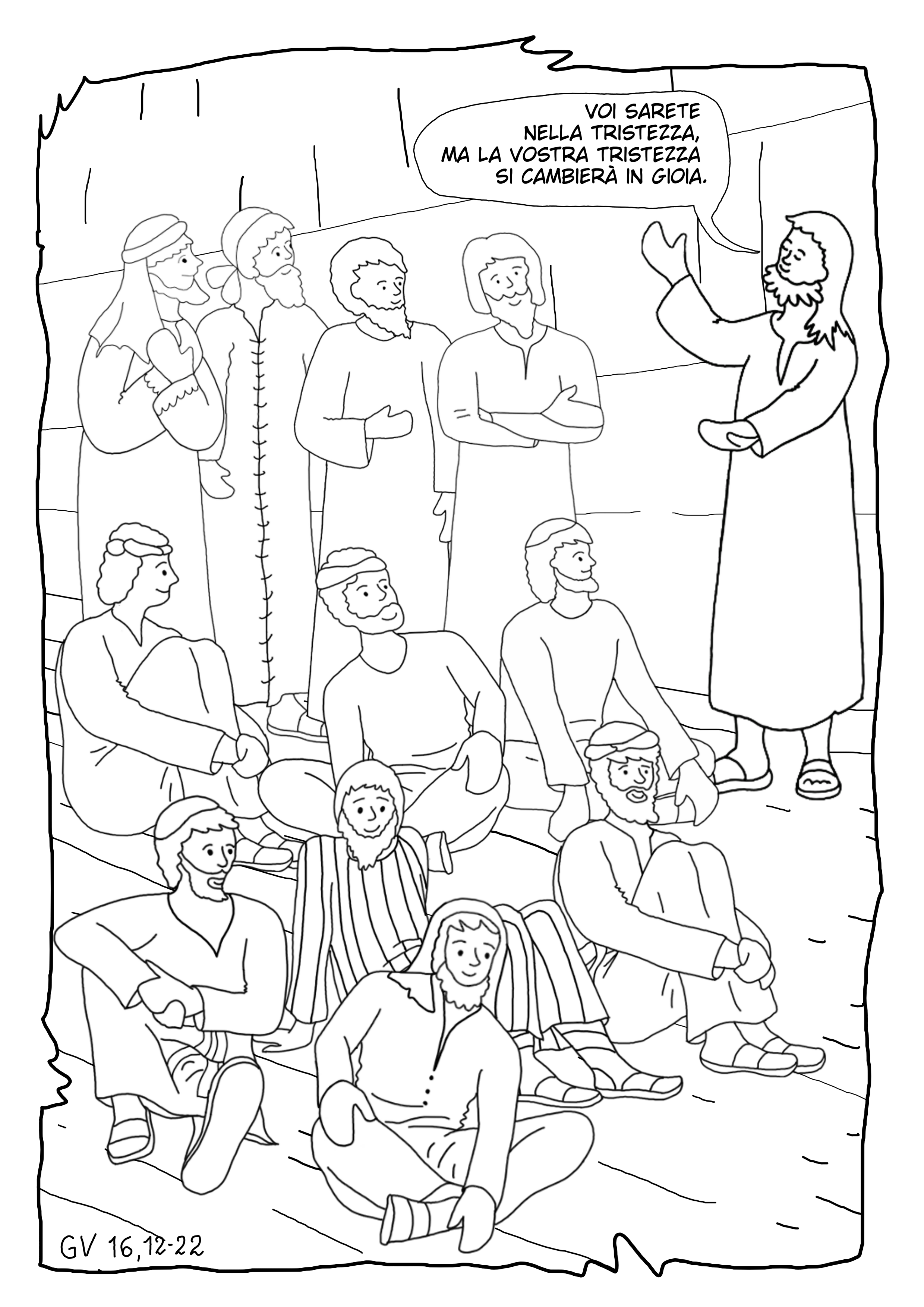 Pasqua 2025 - Anno C vb Senza categoria Domenica 25 maggio Disegni a cura di Virna Maria Paghini, Ordo Virginum Milano 21 Maggio 2025 Rito ambrosiano e rito romano Sesta domenica di Pasqua Rito ambrosiano. Sesta domenica di Pasqua (immagine a colori) Rito ambrosiano. Sesta domenica di Pasqua (immagine in bianco e nero) GV 16,12-22 - Quando verrà lui, lo Spirito! - Trova le parole Rito romano. Sesta domenica di Pasqua (immagine a colori) Rito romano. Sesta domenica di Pasqua (immagine in bianco e nero) GV 14,23-29 - Vi do la mia pace - Trova le parole