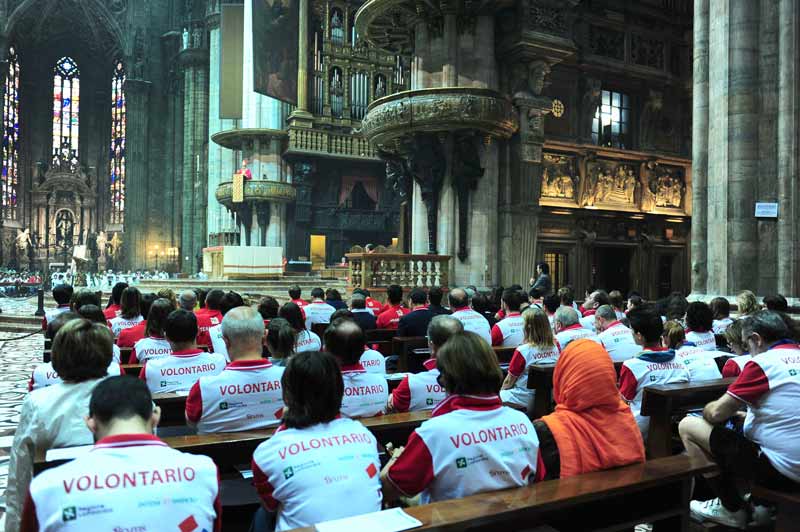 Sono 5408 le persone che presteranno servizio come volontari. Le donne sono poco di più degli uomini. Oltre la metà ha meno di 35 anni, 4 su 5 vengono dall’Italia. Ma ci sono anche ultrasettantenni, stranieri e migranti. “Unità e missione sono i due tratti tipici del volontario: unirsi con i propri doni e proprie capacità per metterli a servizio della grande famiglia che è la Chiesa”, ha detto l’arcivescovo Scola durante l’omelia.