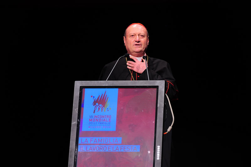 Nel rapporto tra famiglia e lavoro s’innesta il riposo, «che favorisce l’equilibrio, dà un ritmo agli affetti e al lavoro, perché è lo spazio della ri-generazione, della ri-creazione ed è compiuto quando diventa festa, cioè riposo, sosta gratuita, comunitaria e piena di gioia». Nelle parole dell’Arcivescovo «la scelta del Santo Padre di convocarci da tutto il mondo per riflettere sugli aspetti fondamentali dell’umana esperienza dice con chiarezza l’insostituibile risorsa che la famiglia rappresenta per ogni persona e per l’intera società». Il lavoro del Congresso «ci permetterà di cogliere il proprio della famiglia stessa nelle variegate modalità culturali in cui si è andata esprimendo». Infatti «questo VII Incontro mondiale delle famiglie è anzitutto e soprattutto un evento di testimonianza reciproca e di testimonianza a ogni nostro fratello uomo».