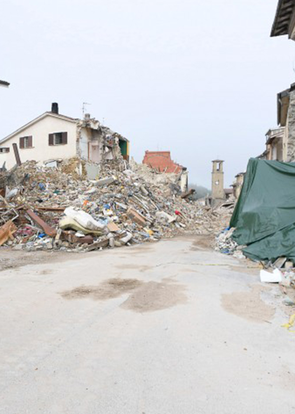 L’area è costituita da 30 piccoli borghi sparsi sui monti, lungo la faglia sorgente del sisma, che ha aperto sul terreno un ferita ancora visibile per 25 chilometri. Piccoli centri rasi al suolo, come ad esempio Saletta, un paese fantasma dove anche la chiesa è venuta giù, o Retrosi. Gli abitanti di questi centri, per lo più agricoltori e allevatori, non hanno voluto lasciare i loro animali e vivono nei moduli prefabbricati accanto alle stalle. Ora con l’avvicinarsi dell’inverno e delle neve rischiano di rimanere isolati.