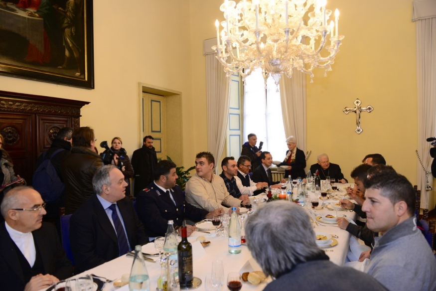 L’emozione – ben lo si capisce – per un evento «per noi straordinario», come dice uno degli ospiti, è evidente all’inizio del pranzo, ma si scioglie subito e diviene dialogo con l’Arcivescovo. Mentre arrivano, fumanti, le crespelle alle verdure, è Gabriele, il primo a parlare. Sconta l’ergastolo, è già da vent’anni in carcere: «vengo – spiega con orgoglio –dalla terra magnifica di Giardini Naxos, e non avrei mai pensato di poterla conoscere o di essere seduto alla tavola di casa dell’Arcivescovo di Milano. Questo pranzo lo dedico anche agli altri miei compagni che non sono qui. Ringrazio chi mi ha tirato fuori dal “macello” della mia vita».