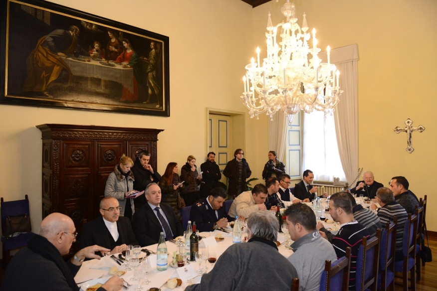 In Duomo, si è appena concluso il Pontificale solenne, e il Cardinale, appena rientrato dall’aver presieduto la Celebrazione, accoglie, in casa propria, ciascuno con un sorriso. L’atmosfera cordiale, il calore che si respira, l’attesa palpabile, fa il resto, quasi a dare una concretezza esemplare all’invito ad accogliere i più soli o bisognosi per un pranzo o una cena nei giorni di festa, ripetuto da Scola in Avvento e nelle Eucaristie del tempo di Natale. Auspicio che ha trovato risposta pronta in Diocesi, grazie, a Caritas Ambrosiana, mobilitatasi attraverso l’iniziativa “Il pane spezzato è più buono dell’aragosta”.