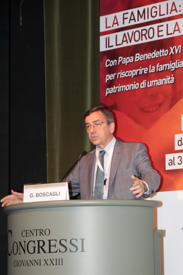 Giulio Boscagli, assessore alla Famiglia, conciliazione, integrazione e solidarietà sociale della Lombardia ha portato il saluto e il sostegno della Regione e ricordato quanto è stato fatto dalla politica in questi anni: la legge 23 che finanziato migliaia di progetti di associazioni familiari, il Fondo Nasco per mamme in difficoltà al quale hanno aderito 2500 donne permettendo la nascita di 1350 bambini, il miglior raccordo tra mondo del lavoro e impresa riformando formazione professionale e apprendistato.