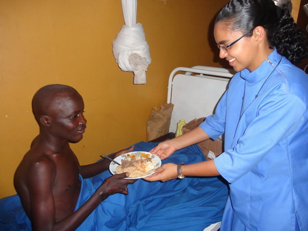 Ogni giorno la comunità porta il pranzo ai poveri ricoverati in ospedale. La visita alla struttura mi ha scioccato per il degrado e la mancanza d’igiene: i letti sono spesso condivisi da malati che nemmeno si conoscono, le corsie sono sovraffollate e le latrine emettono un puzzo indescrivibile. L’ospedale non provvede all’alimentazione dei pazienti, dipendenti quindi da familiari che stiano con loro per cucinare e lavare vestiti e lenzuola (che non vengono fornite ai malati). Ma chi non ha nessuno che si prenda cura di lui morirebbe letteralmente di fame. Allora un’assistente sociale segnala questi casi alla comunità, che procura almeno un abbondante pasto al giorno e spesso si fa carico delle cure mediche (a pagamento anche nelle strutture pubbliche).