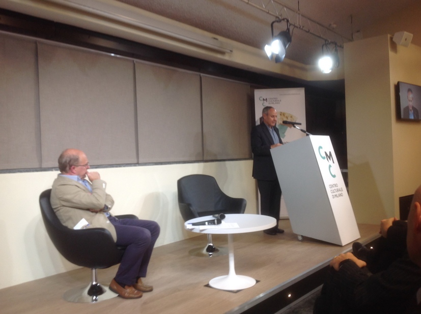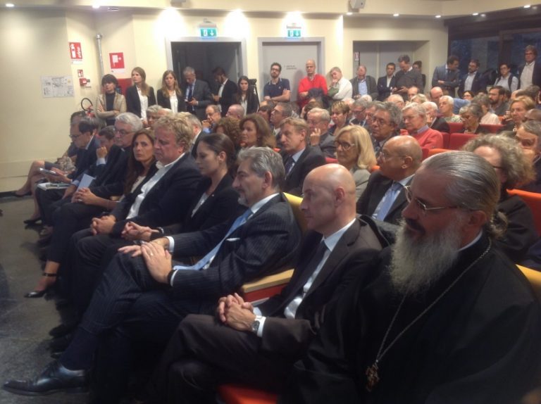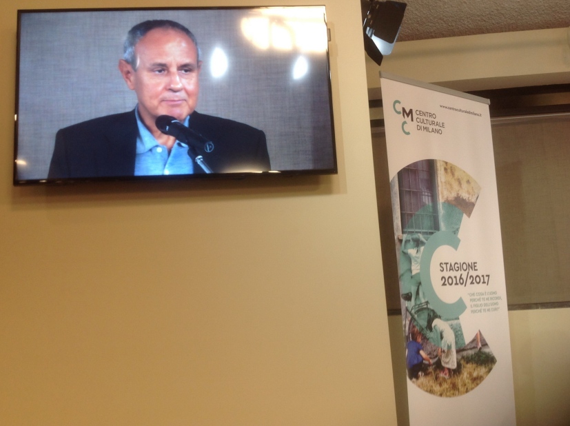 «Vogliamo vivere il congiungimento della cultura con la vita», spiega davanti moltissimi ospiti, tra cui Mahamoud Asfa della Casa della Cultura Islamica, la regista Andrée Ruth Shammah – ci siamo conosciuti grazie a Testori, dice ancora Fornasieri –, il presidente e la vicepresidente del CMC, il presidente di Area Expo, Bonomi.