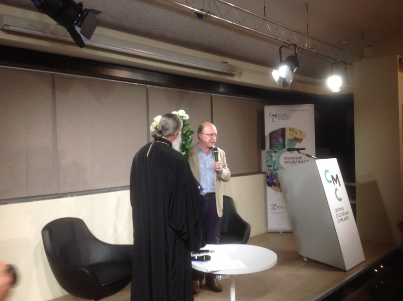 In prima fila siede e annuisce padre Ambrogio Makar della Chiesa ortodossa Russa, cui è stata affidata la chiesa, vicinissima al CMC, di San Vito al Pasquirolo. Fatto che è quasi un emblema concreto del dialogo e dei nuovi fenomeni del mondo globale (padre Makar dona al “Centro” una bella icona della Madonna Madre Odigitria).