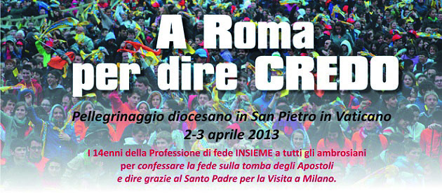 Per l’iscrizione al Pellegrinaggio diocesano a Roma anche i gruppi dei quattordicenni dovranno riferirsi al coordinamento tecnico della «Duomo Viaggi & Turismo», che si occuperà di ricevere le iscrizioni e di consegnare il kit diocesano. Alla Duomo Viaggi ci si potrà rivolgere anche per eventuali richieste su vitto, alloggio e viaggio. La tappa del Pellegrinaggio per i quattordicenni si inserisce nel Cammino per la Professione di fede 2013 “Ci credo! I segnali della fede” che si concluderà con un ulteriore evento diocesano presso il Sacro Monte di Varese sabato 11 maggio, con il Vicario generale monsignor Mario Delpini. La speciale guida per gli educatori dei quattordicenni sarà a disposizione, da sabato prossimo, presso la libreria In dialogo in via S. Antonio 5 a Milano.