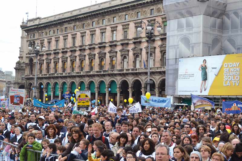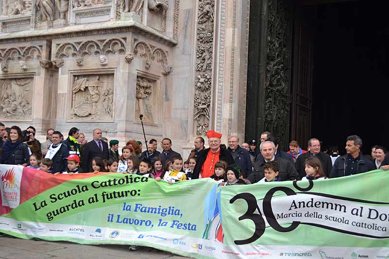 Erano 20 mila le persone, tra alunni, genitori, docenti e dirigenti scolastici, che questa mattina hanno partecipato alla tradizionale marcia della Scuola cattolica “Andemm al Domm”. Vi erano anche molti volti noti delle istituzioni: il presidente della Regione Lombardia Formigoni, il Vice-Sindaco di Milano Guida, il presidente del Consiglio Provinciale di Milano Dapei, il direttore della sede di Milano dell’università Cattolica Gatti, l’assessore all’istruzione della Regione Lombardia Aprea, il dirigente dell’ufficio scolastico di Pavia e Lodi Bonelli, la docente dell’università Cattolica Gozzoli, il presidente di UBI Vigorelli, il presidente regionale FIDAE don Danesi e il presidente dell’Associazione della marcia della scuola cattolica Ricupati.
