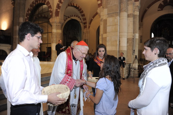 Un applauso caloroso e spontaneo di circa cinquecento 18/19enni ha salutato l’intervento del cardinale Angelo Scola che oggi pomeriggio ha concluso il momento di preghiera in Sant’Ambrogio. Un Arcivescovo molto divertito dai colori dei ragazzi – «belli, nuovi, creativi, inediti» – e che ha ricevuto dalle mani di ciascuno di loro la Regola di vita: una lettera personale nella quale sono sintetizzati i motivi della propria fede e si assumono alcuni impegni per la preghiera, la formazione personale e il servizio alla comunità cristiana e ai poveri.