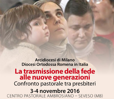 Pur avendo dinamiche diverse tra loro, le migrazioni dai diversi paesi rivestono spesso il carattere di una migrazione familiare, e questo crea le condizioni per dover necessariamente affrontare il tema della trasmissione della fede alle giovani generazioni. È un tema molto importante anche per la Chiesa ambrosiana, che nel corso degli ultimi anni sta cercando di trovare nuove vie per rendere bella e affascinante la proposta di una esperienza cristiana, nel solco di una tradizione diocesana molto importante. L’incontro che proponiamo nasce da una richiesta che S.E. il Vescovo Siluan – a capo della Diocesi Ortodossa Romena in Italia, con più di 200 parrocchie e quasi 250 sacerdoti – ha fatto circa un anno fa al Card. Angelo Scola, per consentire ai pastori ortodossi e ambrosiani di potersi confrontare su un tema tanto significativo come quello della trasmissione della fede alle giovani generazioni. È interessante considerare che la Diocesi Romena in Italia è – tra tutte le Diocesi appartenenti al Patriarcato Ortodosso di Bucarest – quella con il maggior numero di battesimi all’anno, segno di una realtà molto giovane che sta radicandosi nel nostro paese. Sono numerose le circostanze in cui i fedeli ortodossi – romeni e non – entrano in relazione con le nostre comunità, a partire dai circa 150 matrimoni misti all’anno, per continuare con i ragazzi che – pur avendo già ricevuto i sacramenti dell’Iniziazione Cristiana – chiedono di poter partecipare agli incontri di catechismo insieme ai loro amici e compagni di classe, per non parlare di quanti assistono in vari modi le persone anziane affidate alle loro cure, e che magari chiedono un aiuto spirituale anche nei termini di una accoglienza sacramentale.