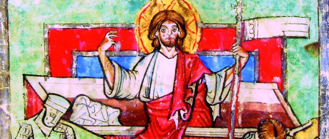 In un’altra miniatura dell’Ambrosiana, invece, il lenzuolo che avvolge il Cristo che emerge dal sepolcro (quasi un inaudito pozzo di smeraldo) ha addirittura i bagliori dell’oro, mentre raggi di luce si irradiano direttamente dal corpo di Gesù: una teofania luminosa che cerca, con i limitati mezzi della percezione umana, di rendere la dimensione sovraterrena della risurrezione.