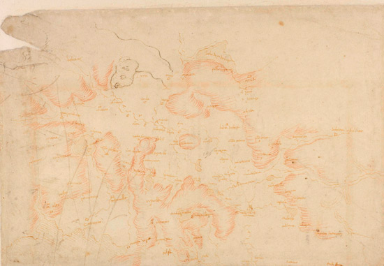 Non mancano, in questi preziosi fogli del Codice Atlantico, anche altre osservazioni su diversi fenomeni celesti, come la cometa, l’arcobaleno, ma anche l’ottica applicata ai corpi celesti, la sfera del Sole e il calore di suoi raggi. Interessanti sono inoltre i suoi studi sul rapporto fra le maree che, come respiro del mondo, sono paragonati al respiro del polmone dell’uomo. Leonardo osserva poi il comportamento dei gamberi con Luna piena che lo porta a disegnare la Terra con i livelli massimi e minimi di marea. L’esposizione leonardesca si conclude infine con i disegni di cosmografia, tra cui la Carta dell’Italia centrale, la Carta dei laghi lombardi e il Disegno del mar Mediterraneo.