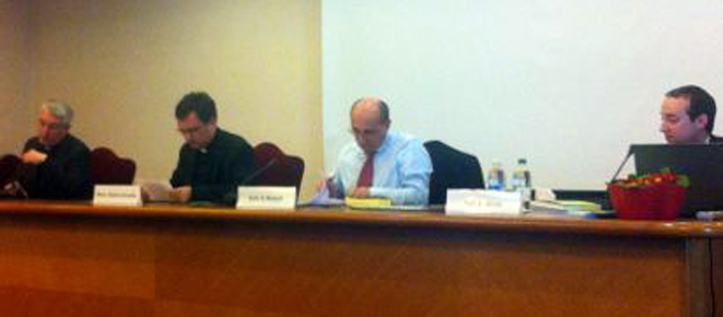 Il dottor Brunelli ha aperto la riflessione con uno stimolante e interessante parallelismo ripreso dal teologo Karl Rahner, a proposito dell’importanza storica dell’Europa e del suo compito nella storia della salvezza: al pari del ruolo svolto da Israele nella storia salvifica, l’Europa è chiamata a compiere il proprio imprescindibile ruolo per l’attuale fase della storia della salvezza. In tal senso l’attenzione è stata indirizzata alla centralità della persona, come luogo non di una privatizzazione della fede bensì come occasione di solidarietà, come mutuo e concreto aiuto, non meramente ammantato di belle intenzioni e in sostanza mosso da interessi economici, ma come decisione forte per il bene dell’Europa e dei suoi cittadini in senso globale.