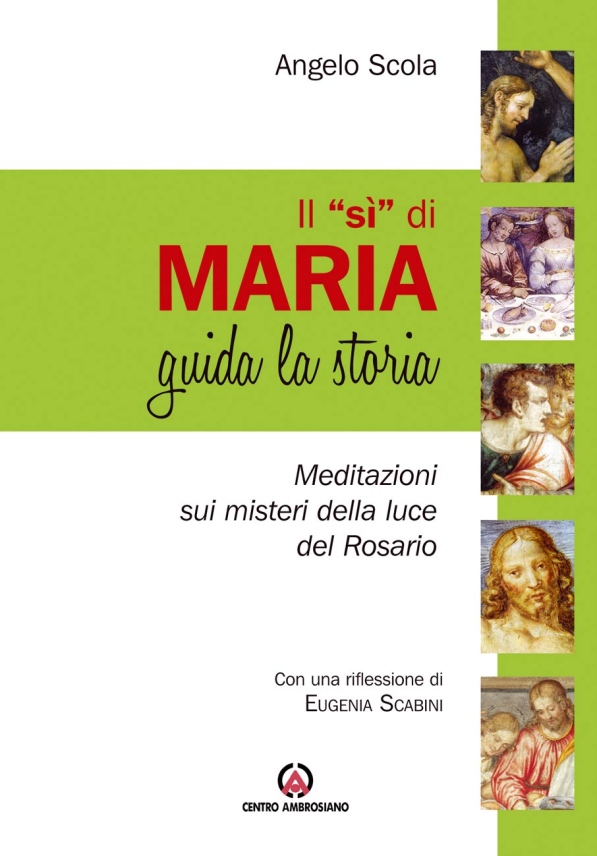 Si intitola invece Il “sì” di Maria guida la storia il libro con le meditazioni del cardinale Scola sui misteri della luce del Rosario (Centro Ambrosiano, pagine 32, euro 2.20). La prefazione è di un’altra donna «impegnata» nel lavoro e in famiglia, Eugenia Scabini, docente di Psicologia dei legami familiari presso l’Università Cattolica e nonna. Tra le riflessioni all’interno troviamo spunti tratti da omelie e scritti di Benedetto XVI. Le immagini che accompagnano il testo sono particolari degli affreschi di Bernardino Luini in San Maurizio al Monastero Maggiore di Milano. Scrive l’Arcivescovo: «Dalla fede di Maria ha avuto inizio la nostra salvezza. La storia e il presente del nostro popolo documentano in tantissime donne, uomini, famiglie, cosa significhi il “mite coraggio del sì”, che esprime la fede e l’umanità compiuta del credente».