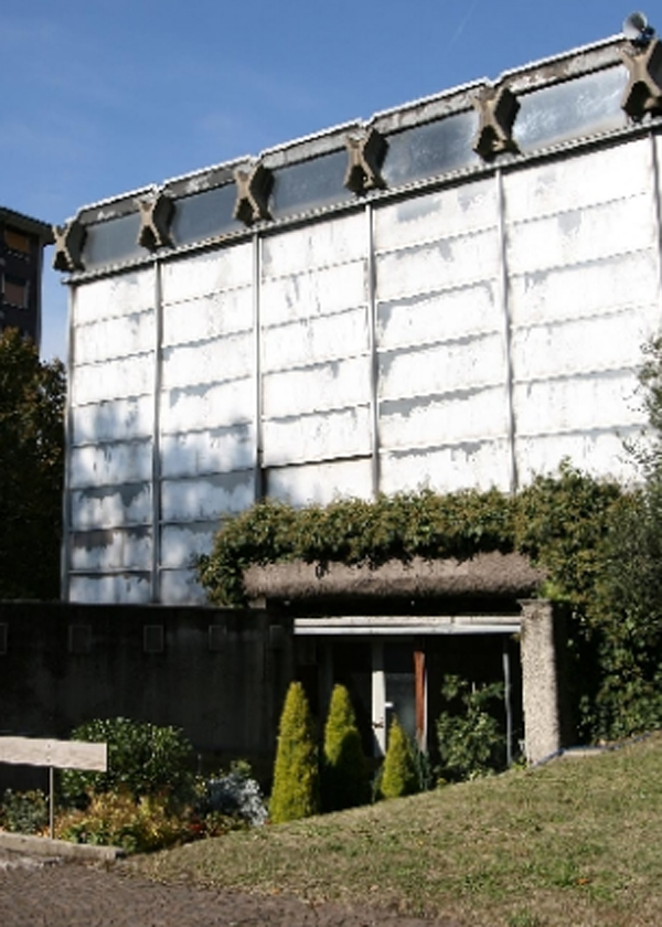Angelo Mangiarotti e Bruno Morassutti sono stati due architetti attivi nel dibattito architettonico dagli anni Cinquanta in poi in Italia e, per quanto riguarda il primo, anche a livello internazionale. La collaborazione risale al periodo giovanile di entrambi (1955-1962) ma lascia importanti risultati per le carriere di ognuno, orientate verso la sperimentazione del materiale e l’innovazione tecnologica dell’architettura: un esempio è dato dall’edificio per abitazioni in via Gavirate a Milano (1959). Mangiarotti affianca all’attività di architetto di capannoni industriali e stazioni ferroviarie milanesi (Rogoredo, Certosa, Porta Venezia, Repubblica, Villapizzone e Rho Fiera), un’intensa partecipazione nel campo del disegno industriale e nel mondo accademico. Mangiarotti affronta i temi della prefabbricazione tramite lo studio di moduli dei componenti edilizi: oltre a numerosi capannoni per ditte private costruiti nel Veneto sono da ricordare il grattacielo cilindrico a Genova (1955), la casa senza pareti a Termini Sorrento (1963-64) e il Centro Istruzione IBM a Novedrate (1970-74).