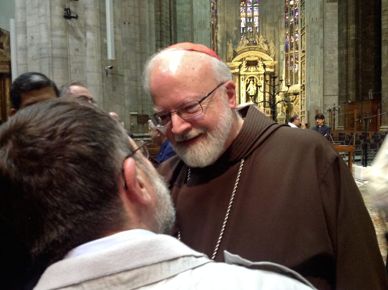 «Abbiamo bisogno di pregare e di amare. Questo, con le parole del Santo Curato d’Ars, è stato fin dall’inizio, è e continuerà a essere il mio messaggio per la diocesi di Boston, per la mia gente e i preti. Credo che solo così sia possibile continuare in quel cammino di speranza e rinascita che stiamo percorrendo da oltre dieci anni». Il cardinale Sean Patrick O’Malley, figura carismatica dell’episcopato statunitense e notissima a livello internazionale, è a Milano, in Duomo, per raccontare la Chiesa locale che guida dal 2003, in anni nei quali la sua diocesi è “rinata” dopo i momenti tremendi degli scandali sessuali e l’avvio di un doloroso iter di cause intentate alla Chiesa, di perdita della credibilità, ma anche di impegno per “ripartire”.