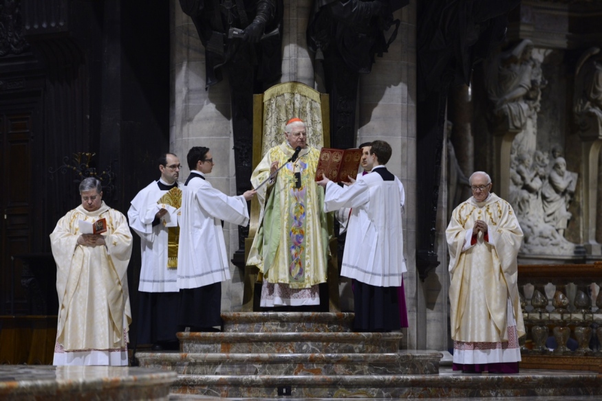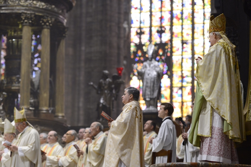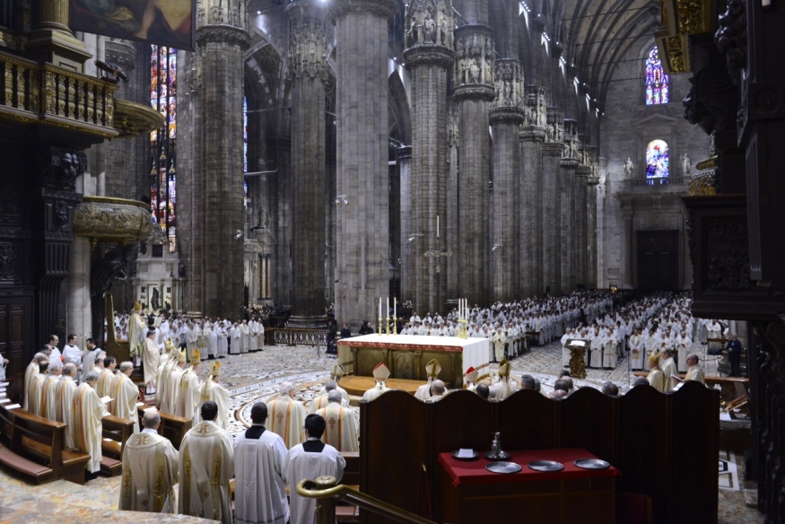 «In un mondo come il nostro, se una persona arriva fino a inginocchiarsi nel confessionale, è già al 90% del percorso per domandare il perdono pacificante di Dio e rientrare nell’esistenza con una pace costruttiva. Di cui solo Dio sa, come i tragici eventi di questi giorni ci richiamano, quanto ha bisogno questa nostra affaticata Europa». È la Riconciliazione, il tema su cui il cardinale Angelo Scola sviluppa l’omelia della Messa crismale del Giovedì santo (in allegato). Una «festa del sacerdozio ministeriale», come la definisce il sussidio preparato per l’occasione. Concelebrano infatti mille preti ambrosiani, mentre Scola è affiancato sull’altare dall’Arcivescovo emerito di Milano, cardinale Dionigi Tettamanzi, dai Vescovi ausiliari milanesi e da tutto il Consiglio episcopale milanese, insieme ad altri Vescovi emeriti ambrosiani di origine: monsignor Carlo Ghidelli, monsignor Emilio Patriarca e monsignor Renato Corti.