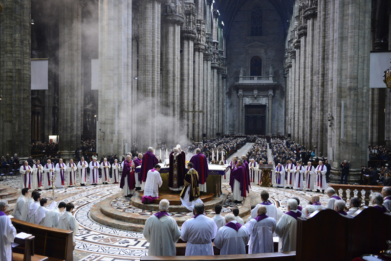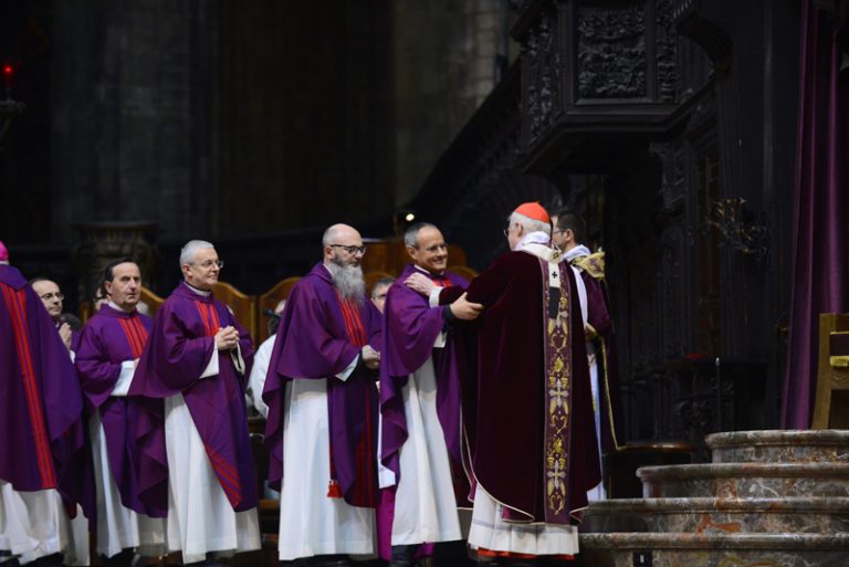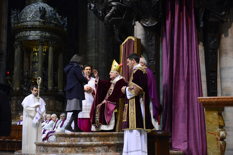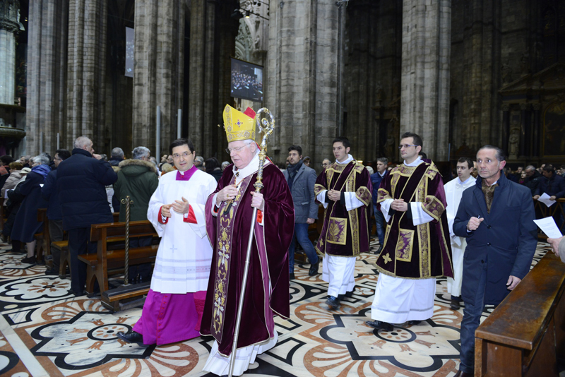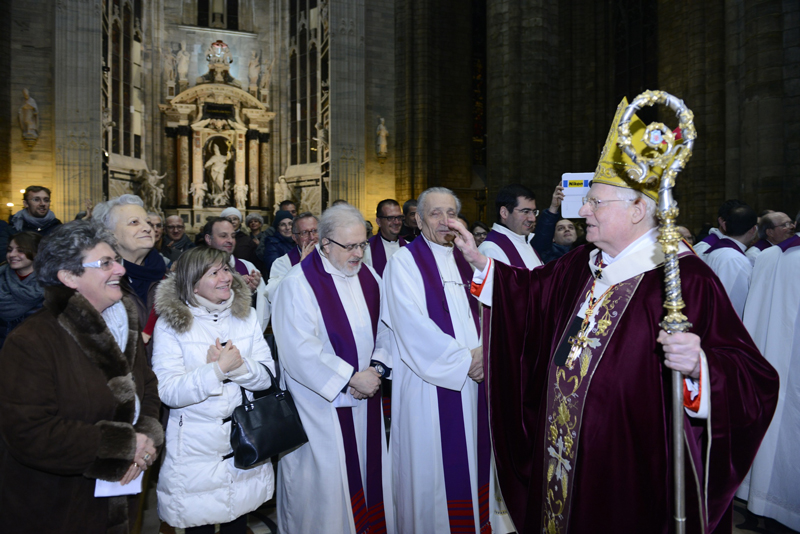 In un Duomo già gremito un’ora prima dell’inizio della Messa, concelebrata don Julian Carrón, presidente della Fraternità e successore di Giussani, da decine di sacerdoti e dai vescovi Agnesi e Tiribilli – presenti la sorella e il fratello del Servo di Dio, Livia e Gaetano, il sindaco di Milano Pisapia, il vicesindaco De Cesaris, il consigliere regionale Carugo e i presidenti della Fondazione Ca’ Granda Ospedale Maggiore Cesana e della Compagnia delle Opere Scholtz -, l’Arcivescovo richiama il “cuore” dell’intera vita e del carisma di don Gius. Quell’appartenenza al Signore che fu il centro affettivo della sua esistenza, fino al dono della vita. Nella citazione di alcune espressioni del Servo di Dio l’invito è così a una consapevolezza chiara e non sentimentale, pur nell’intenso ricordo che non si spegne, come è evidente nel volto commosso di molti.