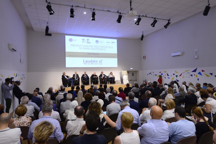 Infatti, la Lettera Enciclica è dedicata alla “casa” che è, comunque, casa comune. Un ambiente che è di tutti e che non pare in grande salute come delinea Neil Thorns, direttore della Cafod, la Caritas nazionale in Inghilterra e consulente per il governo britannico sui cambiamenti climatici, che affronta il tema da due punti di vista, il rapporto con i poveri del pianeta e i cambiamenti del clima, appunto. «L’unica soluzione è utilizzare le energie rinnovabili, abbandonando i combustili fossili, basti considerare che in India l’84% della popolazione non ha accesso all’energia e che stasera una persona su nove nel mondo andrà a letto affamata. Questo – prosegue l’esperto britannico – obbliga a un cambiamento che non può essere solo tecnologico».