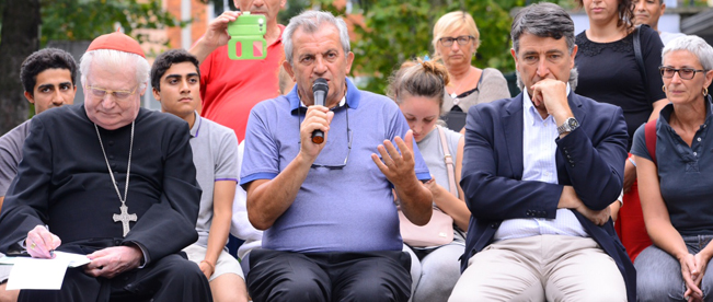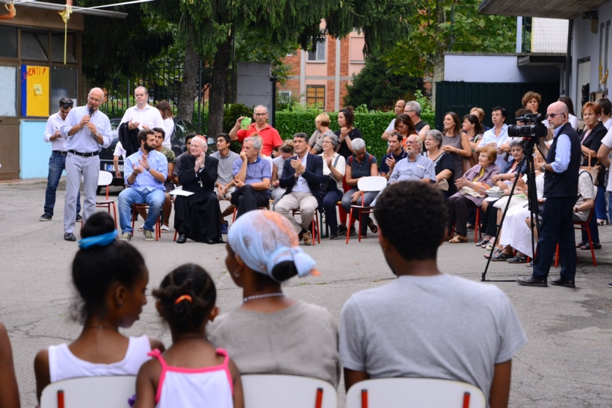 «Questa è una straordinaria esperienza di civiltà condivisa e di fraternità. Abbiamo ricevuto più di quanto abbiamo dato, nel senso che ogni storia rimane espressa in ogni volto che abbiamo incontrato. Ci sono persone che hanno rinunciato alle ferie per essere qui. La risposta forte da parte della comunità e della cittadinanza c’è stata, a riprova che quando si accompagna un’accoglienza diffusa e competente la risposta arriva», scandisce don Colmega, che tra i profughi a ferragosto ha portato tutta Casa della Carità (alla fine erano oltre cento), per fare festa insieme «Voglio ringraziare per il segno bello che date, perché tutti gli uomini, a qualunque etnia e Paese appartengono, sono figli di Dio e hanno in comune l’esperienza dell’umanità: del nascere, del crescere, del guardare la realtà, di condividere il bisogno, con solidarietà e amicizia, anche gli aspetti dolorosi che voi avete e state ancora sperimentando e che la vita riserva a ognuno di noi», riflette l’Arcivescovo, camminando con semplicità al centro del cerchio di persone che si è spontaneamente creato per ascoltarlo. «Questo bel cerchio é proprio l’espressione di ciò che dobbiamo fare emergere e far vedere in questi tempi difficili, ossia che siamo tutti a immagine di Dio. Quello che avete realizzato rappresenta un segno visibile di quello a cui gli uomini sono chiamati, anche se a causa del male che abita talvolta in noi, non riusciamo a mostrare amicizia e fraternità».