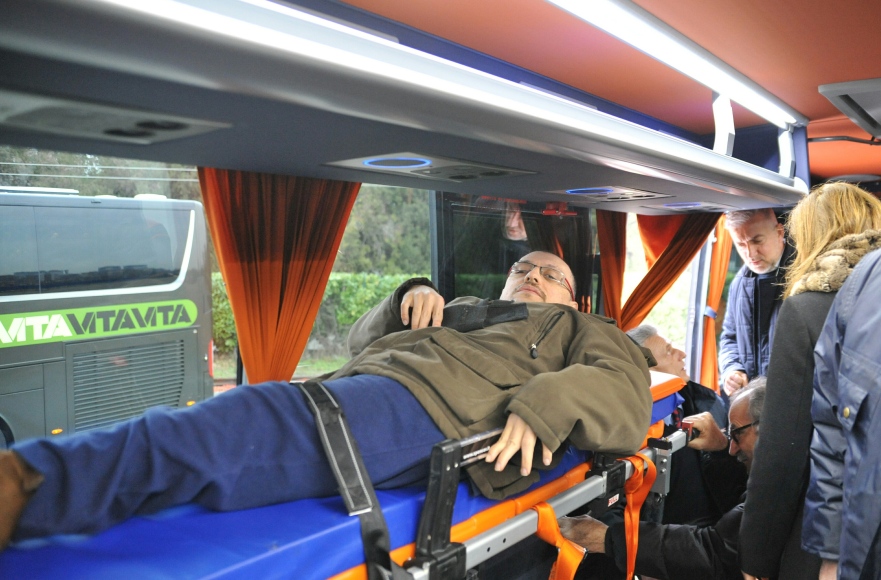 Anche alcune persone con disabilità hanno voluto testare questo nuovo modo di viaggiare. «Molto innovativo avere un pullman così per i viaggi. Ho visto anche i servizi igienici e sono molto ampi», ha osservato Carlo Buzzetti di Varese. «Ho provato a sedermi sulle poltrone, sono molto comode», ha notato Michele De Santis. Entrambi negli ultimi anni avevano partecipato ai pellegrinaggi in aereo, «ma – hanno spiegato – l’imbarco è molto complicato, qui invece è più semplice».