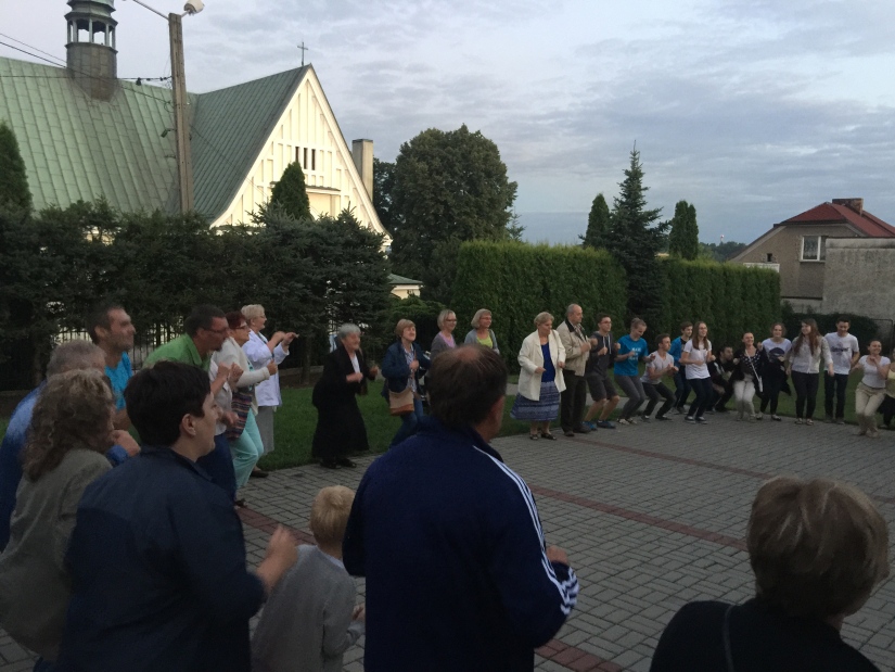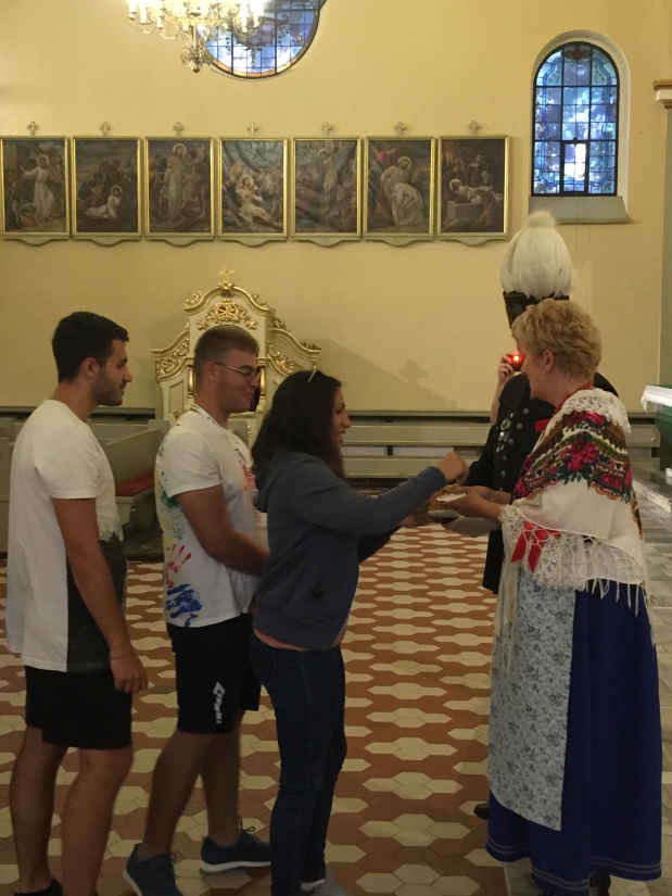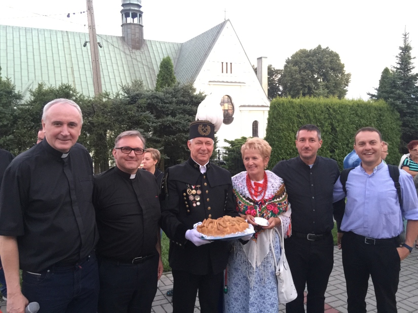 Gregor, un chierichetto di 5 anni, che col suo «gendobre» appena timidamente sussurrato, ha voluto augurarci la buona permanenza nella parrocchia di Rybnik. Accanto a lui non poteva mancare l’orgogliosa coppia in abiti storici del paese, nessuna vergogna e nessun timore nel porgere il “saluto in maschera”, quasi a ripetere il gesto del re Davide, che non ebbe timore alcuno a ballare e danzare, cinto solo da un efod, per accogliere la presenza del Signore nell’Arca.