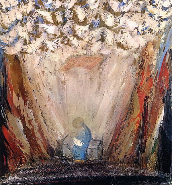 Assisi fu il luogo delle rivelazioni. A se stesso, innanzitutto. La scoperta della spiritualità di san Francesco, l’incontro con la Pro Civitate Christiana, la decisione meditata di convertirsi al cattolicesimo. E contemporaneamente, passo dopo passo, pennellata dopo pennellata, Congdon si immergeva sempre più nel sacro, nelle sue espressioni, nelle sue figurazioni. Il Cristo in croce lo attirava, su tutto, come il Poverello in San Damiano. Crocefissi impastati di materia e di spirito, di colore e di sangue, spatolati, incisi, modellati più che dipinti. Via via rarefacendosi in una forma larvale, essenziale, in quell’ultimo respiro reso dal Salvatore sul legno del Golgota, le braccia spalancate ad abbracciare il mondo.
