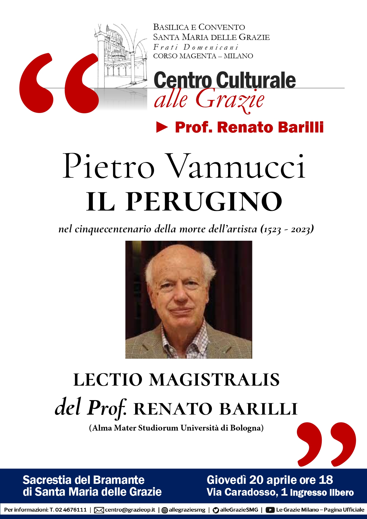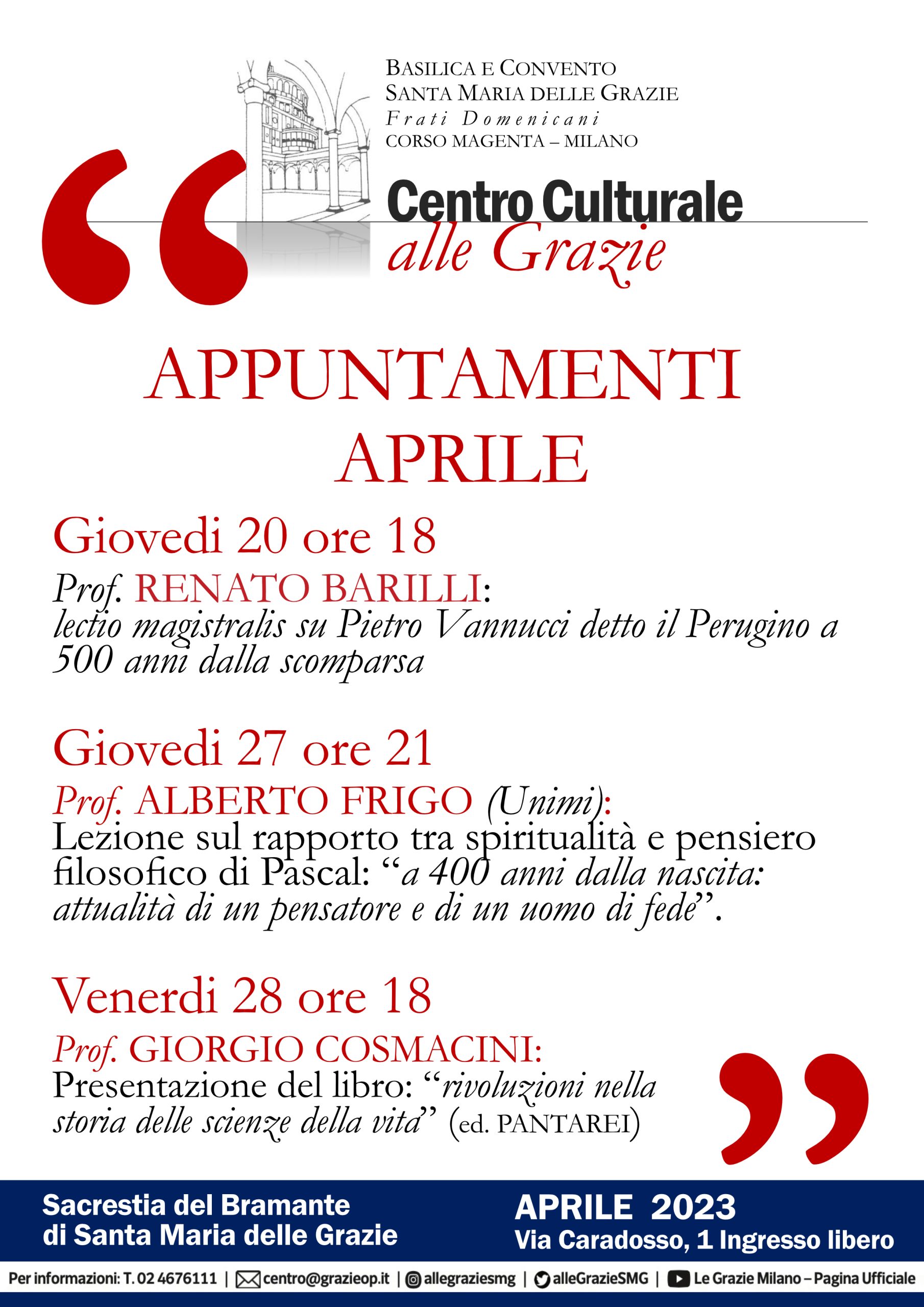 Il centro promuove la cultura in ogni sua forma sotto la guida sapiente dei frati che mettono a disposizione la splendida Sacrestia del Bramante e la Basilica Santuario, che custodiscono da più di 550 anni, per gli eventi promossi dal centro.
