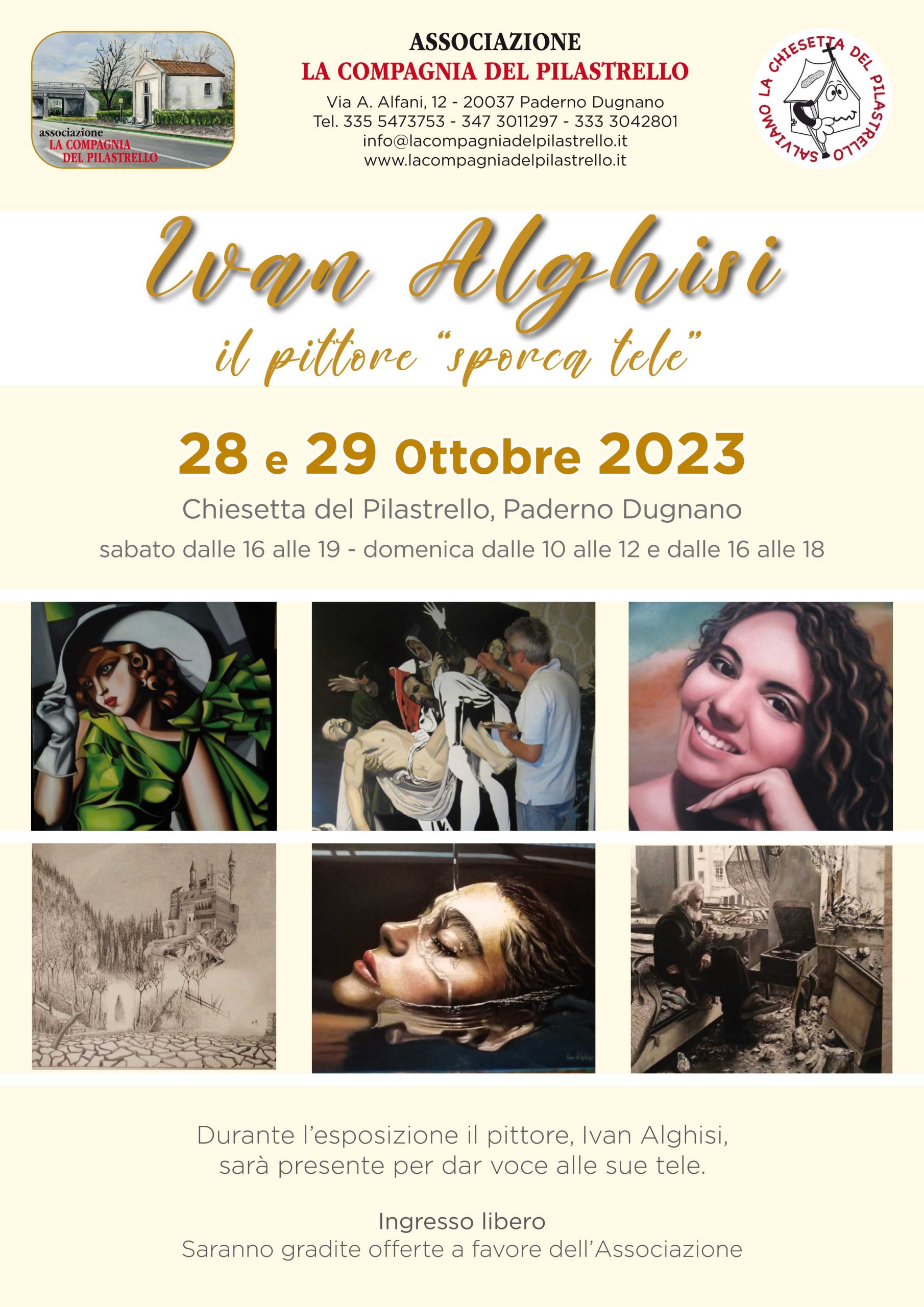 Immagini della locandinaIl 28 e 29 ottobre esposizione Chiesetta del Pilastrello (Paderno Dugnano) di opere pittoriche di Ivan Alghisi, autodidatta ma con eccellenti capacità che gli consentono di imitare in modo perfetto grandi autori e di produrre opere di sua libera invenzione (informazioni e orari).