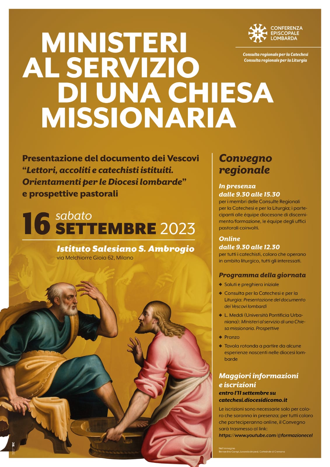 Per tutti coloro che parteciperanno online, il Convegno sarà trasmesso sul canale della Conferenza Episcopale Lombarda al link: https://www.youtube.com/@formazionecel