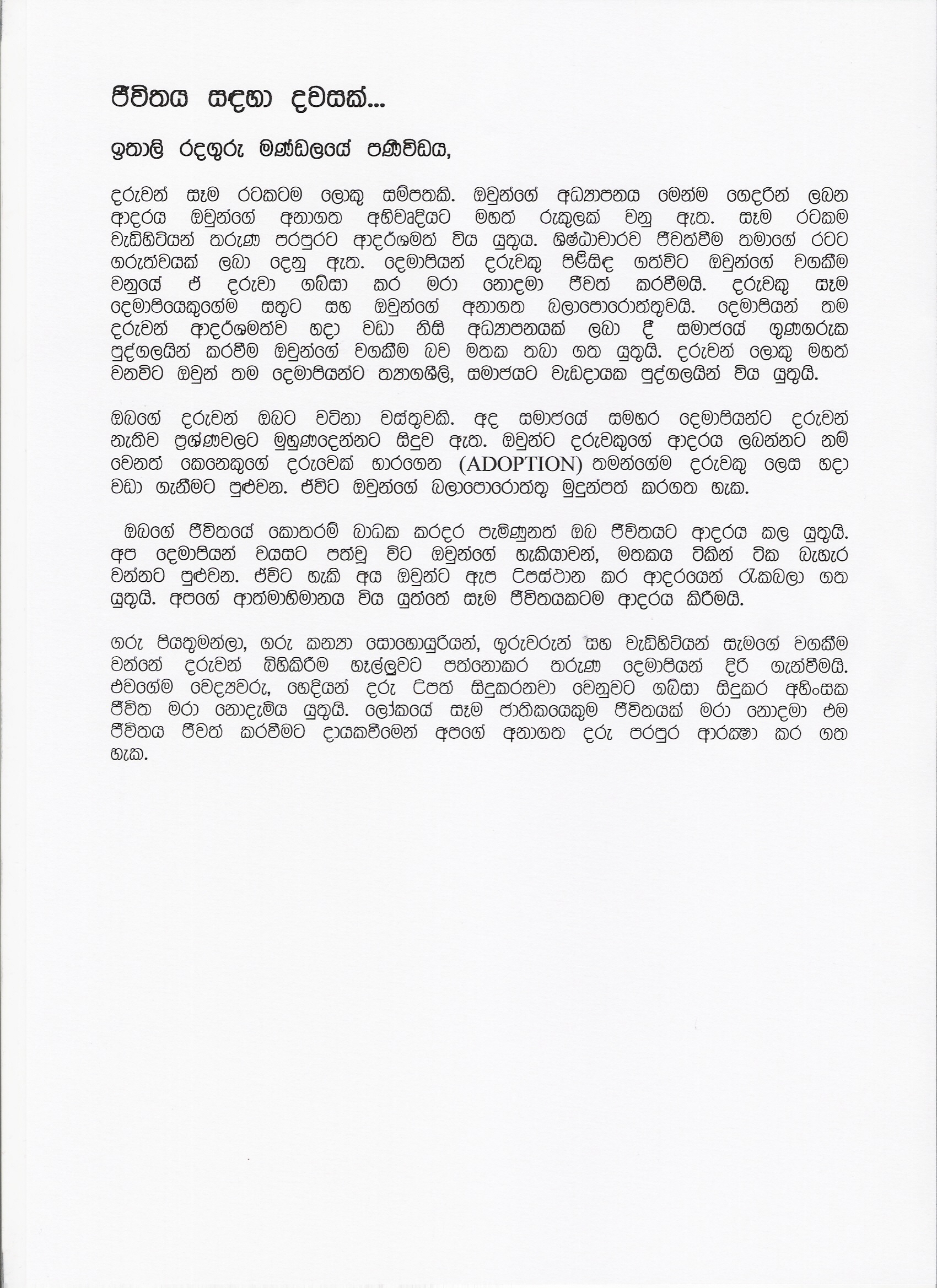 Grazie alla collaborazione con Movimento per la Vita, CADR e Pastorale dei Migranti è stato possibile realizzare la traduzione del Messaggio in alcune lingue straniere; il testo è disponibile nelle seguenti lingue: • ARABO • ALBANESE • CASTIGLIANA • CINGALESE • COREANA • FRANCESE • GIAPPONESE • INGLESE • POLACCA • RUMENA • TAGALLO • UCRAINA