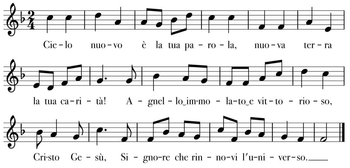 RN 47 Cielo nuovo … Spartiti Versione originale Versione per coro Armonizzazione – Alessandro La Ciacera Audio Pubblicato martedì 5 Novembre 2019 Modificato il martedì 5 Novembre 2019